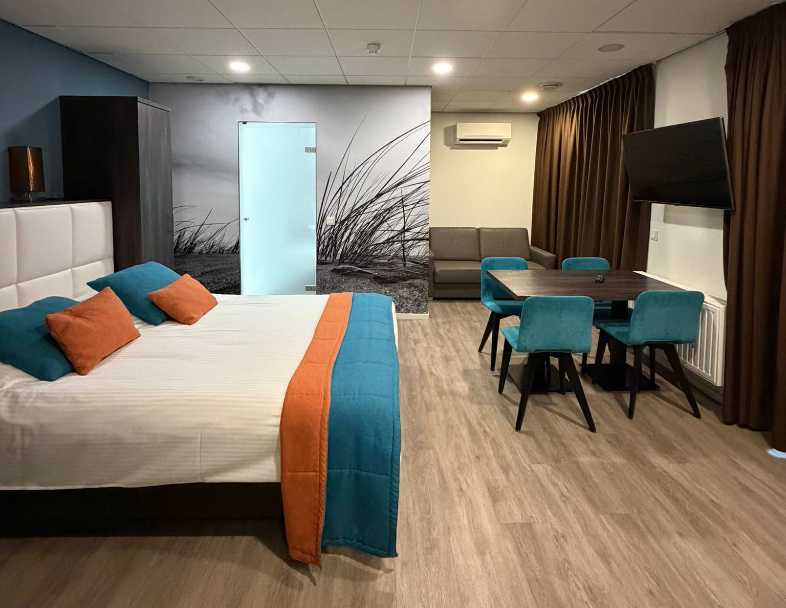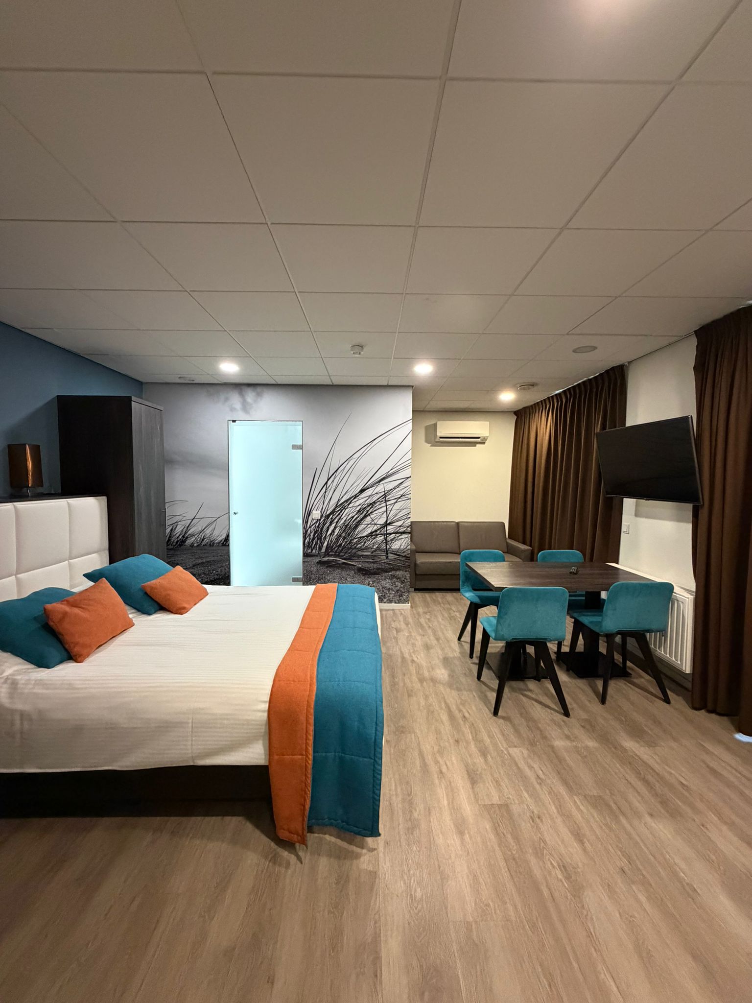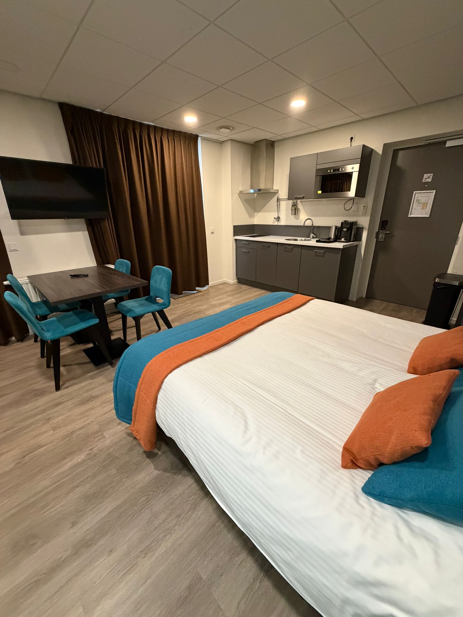 Prachtige studio voorzien van kingsize bed, luie sofa, keuken, eettafel, badkamer met luxe douche en toilet, tv, airco en krachtige gratis WiFi!